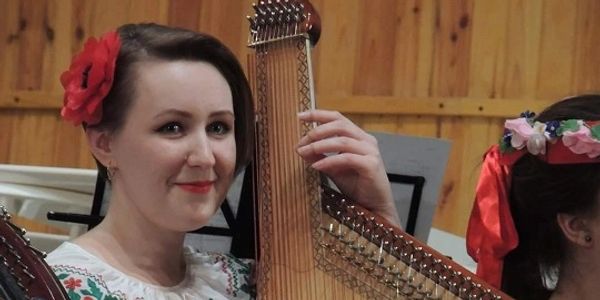 Yuliia Komyshan is a professional bandura player from Poltava, Ukraine (a bandura is a Ukrainian plucked-string folk-instrument). She has degrees from Poltava Professional College of Arts and from Glinka Dnipropetrovsk Academy of Music and a PhD in Educational and Pedagogical Sciences.